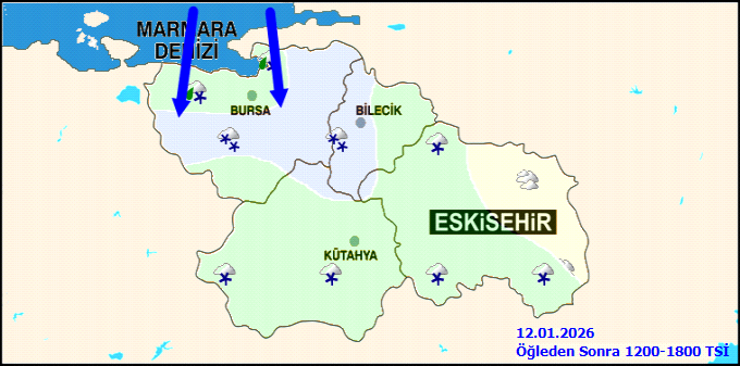 Meteoroloji 3. Bölge Müdürlüğü’nün günlük hava tahmin raporuna göre Eskişehir ve bölgesinde yeni hafta kar yağışlı başlayacak. Yağışların çarşamba gününe kadar sürmesi bekleniyor.